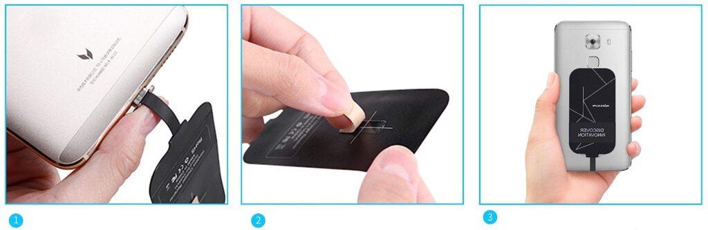Nillkin, USB-C dodatek, ki telefonu omogoči, da ga polnimo brezžično preko QI standarda. Dodatek je zelo tanek in ga lahko vstavimo tudi pod ovitek telefona.